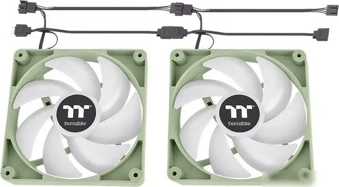 Этот набор вентиляторов Thermaltake CT140 Sync ARGB включает два 140-мм вентилятора с зелёной подсветкой ARGB, создавая эстетичный внешний вид. Вентиляторы используют гидродинамический подшипник, что обеспечивает тихую и долговечную работу. Они регулируют скорость в диапазоне от 500 до 1500 об/мин, позволяя балансировать между охлаждением и уровнем шума. Максимальный воздушный поток составляет 77,37 CFM, что помогает эффективно охлаждать компоненты. Поддержка PWM и цепочек подключения делает их удобными для настройки и установки. LED-подсветка подключается через 3-пин ARGB 5V, что добавляет яркости в систему. Вентиляторы работают с минимальным уровнем шума — 30,5 дБ, не создавая лишнего звука. Время работы и стабильность обеспечиваются благодаря надежному гидродинамическому подшипнику. Размеры устройства — по 140 мм в длине и ширине, 25 мм в толщине — подходят для разных корпусов ПК.