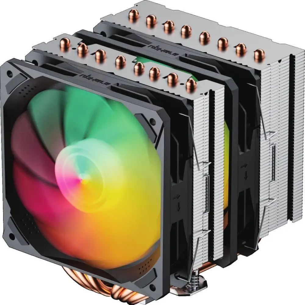 Кулер для процессора upHere D8SEC черного цвета подходит для многих сокетов, таких как AM4, LGA1200 и другие. Он эффективно охлаждает процессор с температурой до 280 Вт благодаря воздушной системе и 8 тепловым трубкам из алюминия. Внутренние вентиляторы диаметром 120 мм работают тихо, создавая поток воздуха с максимальной скоростью 1 600 об/мин и уровнем шума до 25 дБ. Управлять скоростью вентиляторов можно через PWM-режим, что помогает снизить уровень шума и повысить эффективность охлаждения. В кулере используются гидродинамические подшипники для долгой работы и надежности. Подсветка ARGB добавляет стильный вид и легко управляется через специальный подключаемый 3-pin разьем. Конструкция башенного типа обеспечивает простую установку и хорошее распределение тепла. Этот кулер подходит для современных игровых и рабочих систем, где важна эффективная теплоотдача и тихая работа.