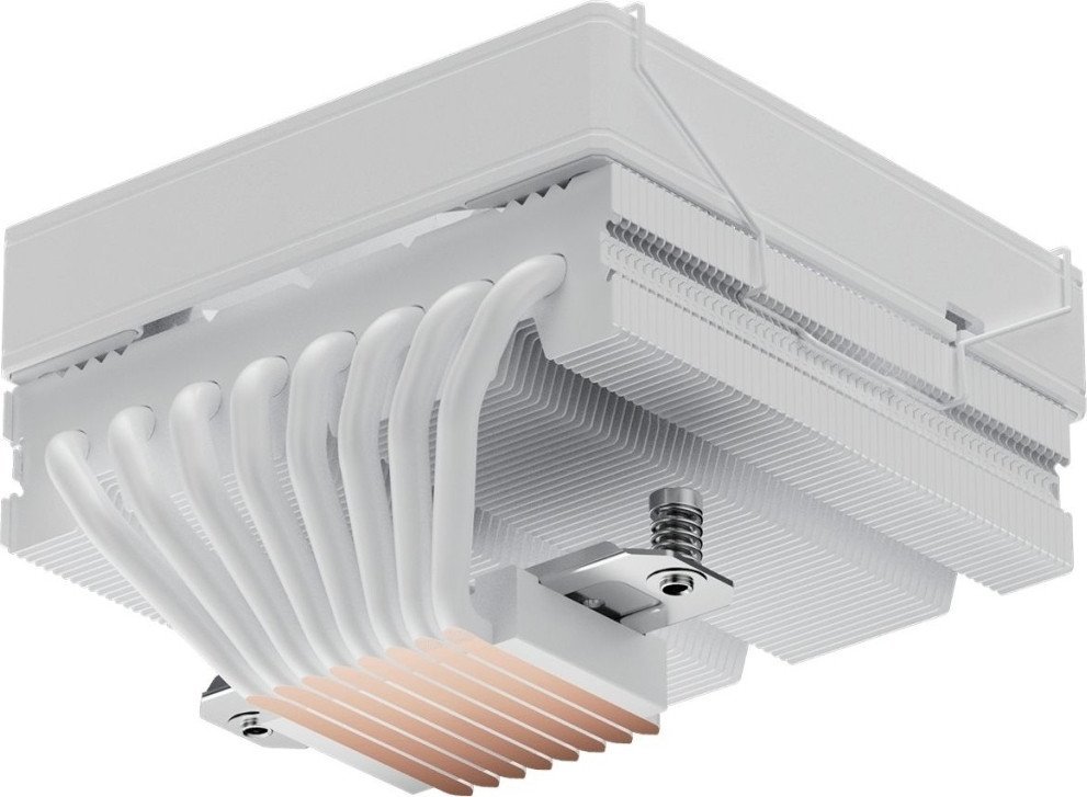 Кулер для процессора upHere H85TC8 выполнен в белом цвете и подходит для различных сокетов, таких как AM4, LGA1700 и другие. Он обеспечивает эффективное охлаждение с рассеиваемой мощностью до 200 Вт, что подходит для современных процессоров. Радиатор сделан из алюминия и содержит восемь тепловых трубок, что помогает быстро отдавать тепло. В кулере установлен один вентилятор диаметром 120 мм с гидродинамическим подшипником, который вращается от 600 до 1650 об/мин и создает воздушный поток до 68 CFM. Управление скоростью вентилятора осуществляется через PWM, а также есть возможность регулировки подсветки ARGB по 3-pin подключению 5V. Встроенная подсветка ARGB добавляет стильный вид, а антивибрационные прокладки снижают шум и вибрацию. Этот кулер работает с низким уровнем шума до 26 дБ, что обеспечивает комфортную работу компьютера. Он легко устанавливается на совместимый сокет и эффективно охлаждает процессор во время работы.