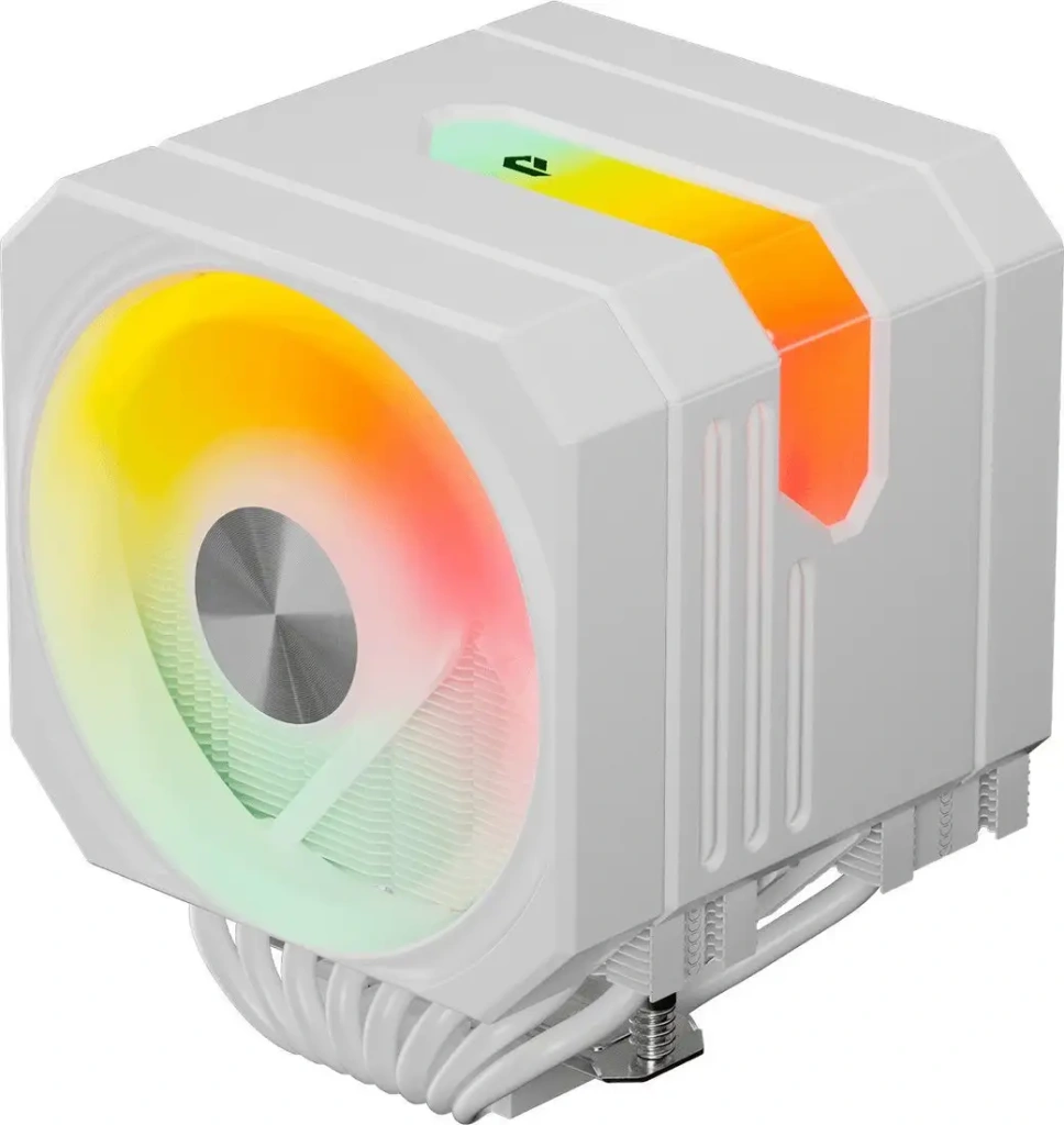 Кулер для процессора upHere UP2TC8C выполнен в белом цвете и оснащён двумя вентиляторами диаметром по 130 мм и 120 мм. Он подходит для различных сокетов, включая AM4, AM5, LGA1700 и другие, обеспечивая совместимость с множеством процессоров. Этот воздушный кулер эффективно рассевает тепло мощностью до 280 Вт благодаря алюминиевому радиатору и восьми тепловым трубкам. Вентиляторы используют гидродинамический подшипник, что продлевает их работу и повышает надёжность. Скорость вращения регулируется через PWM, а максимальный воздушный поток достигает 68.2 CFM, что помогает быстро охлаждать процессор. Кулер имеет встроенную ARGB-подсветку, которая управляется через 3-pin разъем, создавая эффектную подсветку. Он работает тихо: уровень шума не превышает 25 дБ, что делает использование комфортным. Благодаря компактным размерам (Длина 130 мм, ширина 122 мм, высота 158 мм) он легко устанавливается в ПК. Этот кулер поможет сохранять стабильную работу системы даже при высокой нагрузке.