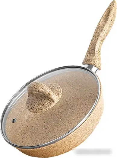 Сковорода Elan Gallery Гармония вкуса 121132 обладает диаметром 26 см и выполнена из легкого алюминия с бежевым медовым гранитным покрытием. Она имеет круглую форму и антипригарное покрытие, которое помогает готовить без прилипаний и облегчает мытьё. Толщина дна составляет 6 мм, что обеспечивает равномерное распределение тепла при готовке. В комплект входит стеклянная крышка, позволяющая контролировать процесс приготовления. Сковорода подходит для газовых и электрических плит, что делает её универсальной. Высота стенок — 6,5 см, она удобна для жарки и тушения различных блюд. В конструкции отсутствуют съемные ручки и индикаторы нагрева, что снижает риск опрокидывания. Простая форма и прочные материалы делают её долговечной и удобной в использовании.