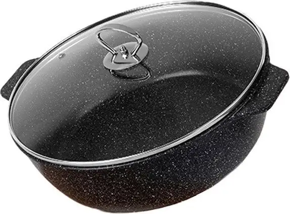 жаровня, алюминий, покрытие фторопласт, 28 см, стеклянная крышка, алюминиевая ручка