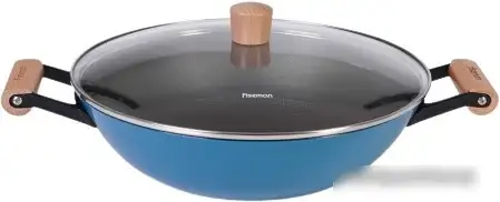 ВОК, чугун, покрытие фторопласт, 32 см, стеклянная крышка, деревянная ручка