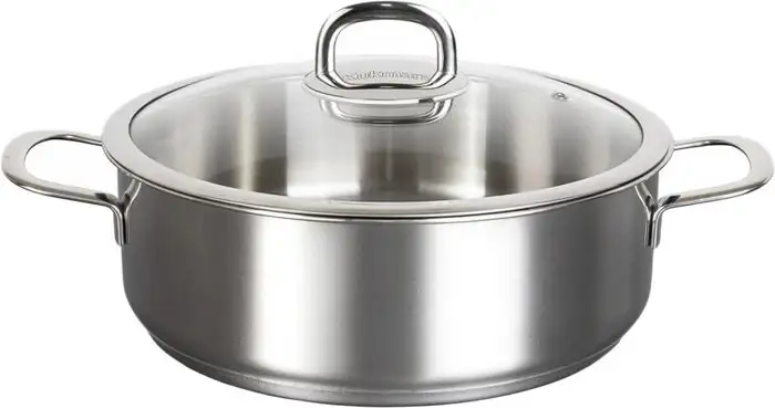 сотейник, нержавеющая сталь, 26 см, стеклянная крышка, стальная ручка