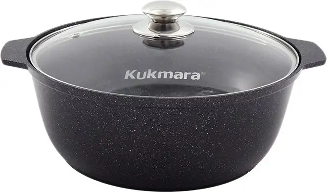 Жаровня Kukmara ЖМТ528А выполнена из легкого алюминия с круглой формой и диаметром 28 см. Она имеет толстое дно толщиной 6 мм, что обеспечивает равномерное распределение тепла. Благодаря антипригарному минеральному покрытию поджаривание и чистка станут проще. В комплект входит стеклянная крышка, которая помогает сохранять вкус и тепло во время готовки. Жаровня совместима с газовыми, электрическими и стеклокерамическими плитами, а также подходит для духовки (без крышки). Она легко моется в посудомоечной машине и обладает удобной алюминиевой ручкой. Размеры – 12 см в высоту и объем 5 литров, весит устройство 3.11 кг. Эта жаровня отлично подойдет для жарки, тушения и запекания различных блюд.