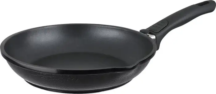 Сковорода Rondell Escurion RDA-894 имеет диаметр 26 см и изготовлена из лёгкого алюминия с толстым дном толщиной 5 мм, что обеспечивает равномерное распределение тепла. Она покрыта прочным фторопластовым антипригарным слоем Xylan Plus, который позволяет готовить без масла и легко очищать посуду после использования. Благодаря совместимости с газовыми, электрическими, стеклокерамическими и индукционными плитами, эта сковорода подходит для любой кухни. Она безопасна для использования в духовке и посудомоечной машине, что облегчает уход за ней. Внутри есть термостойкий индикатор нагрева (термоспот), показывающий, когда блюдо готово, а съемная бакелитовая ручка облегчает хранение и транспортировку. Ультратонкое тело обеспечивает быстрое нагревание и экономию энергии. Несмотря на отсутствие крышки, сковорода удобно управляется благодаря надежной ручке. Такой посудой удобно готовить разнообразные блюда, а долговечное покрытие сохраняет его свойства долгое время.