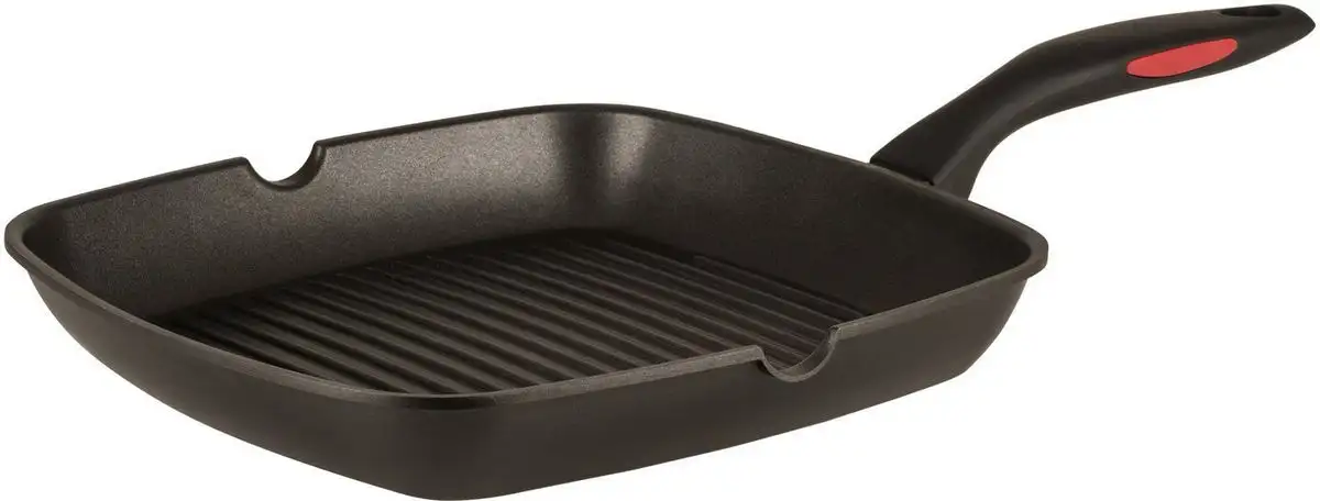 Сковорода-гриль Rondell Perfect RDA-1562 выполнена из алюминия и имеет квадратную форму с размером 28 см. Она обладает прочным фторопластовым покрытием Xylan® Plus, которое обеспечивает отличную антипригарность и простое очищение. Толщина дна 3,5 мм способствует равномерному распределению тепла и быстрому нагреву. Встроенный индикатор нагрева (термоспот) помогает точно контролировать температуру и избегать пригорания продуктов. Сковорода подходит для использования на газовых, электрических, стеклокерамических и индукционных конфорках. Она не совместима с посудомоечной машиной и духовкой, что важно учитывать при уходе. Удобная бакелитовая ручка обеспечивает надежный хват и безопасность при готовке. В комплекте есть носик для слива, который облегчает удаление жидкости или масел, делая процесс готовки более чистым и удобным.