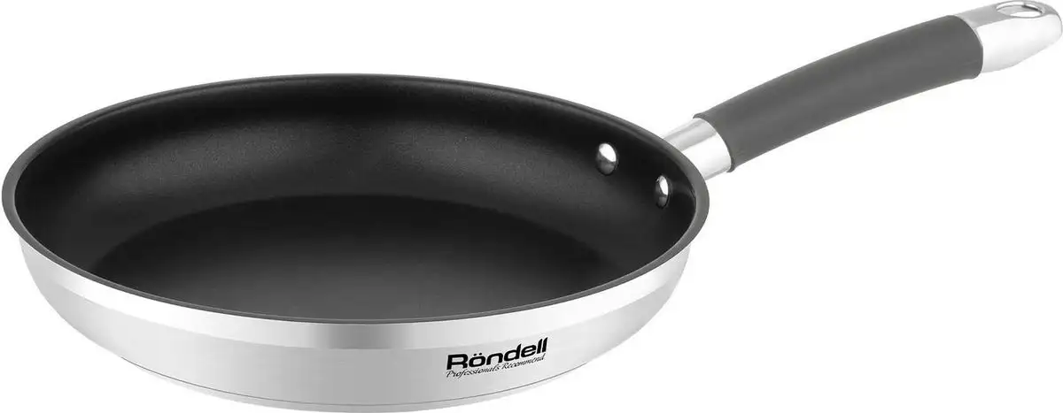 Сковорода Rondell Prime RDS-1677 выполнена из нержавеющей стали и имеет круглую форму. Ее диаметр составляет 26 см, а высота — 4,6 см. Толщина дна — 5 мм, что обеспечивает равномерное распределение тепла. На поверхности есть антипригарное покрытие Eclipse из фторопласта, оно помогает готовить без пригорания и облегчает очистку. Сковорода совместима с газовыми, электрическими, стеклокерамическими и индукционными конфорками. Стальная ручка с изоляцией надежно держится и не нагревается во время готовки. Обратите внимание, что сковорода не подходит для духовки, посудомоечной машины и не имеет индикатора нагрева. Она не включает крышку или подставку, что делает ее компактной и удобной в хранении.