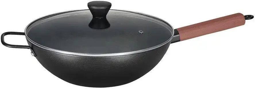 ВОК, нержавеющая сталь, покрытие фторопласт, 32 см, стеклянная крышка, деревянная ручка