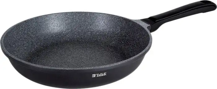 Сковорода Taller Element TR-44254 выполнена из легкого алюминия и оснащена антипригарным покрытием Greblon C3, которое помогает готовить без пригорания и легко очищается. Диаметр сковороды составляет 28 см, а толщина дна — 4,8 мм — обеспечивает равномерное распределение тепла и стабильность при готовке. Ручка из бакелита надежно фиксируется и удобно держится рукояткой. Сковорода подходит для различных типов конфорок — газовых, электрических, стеклокерамических и индукционных. Ее можно мыть в посудомоечной машине, что облегчает уход за посудой. Однако она не предназначена для использования в духовке и не имеет съемной ручки. В комплекте отсутствует крышка и индикатор нагрева. Эта модель отлично подходит для ежедневной готовки благодаря своей устойчивости и удобству.