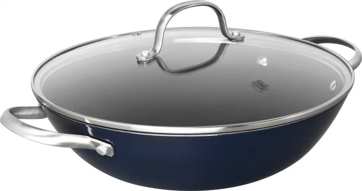 ВОК, чугун, покрытие титановое, 28 см, стеклянная крышка, стальная с изоляцией ручка