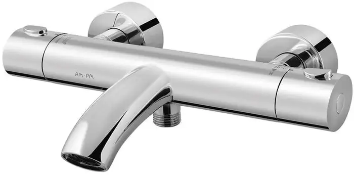 Смеситель AM.PM Sense F7550064 предназначен для установки на стену и подходит для ванны или душа. Он оснащён термостатическим механизмом, который поддерживает стабильную температуру воды и предотвращает её превышение. Смеситель выполнен из прочной латуни в хромированном покрытии, что обеспечивает долговечность и красивый внешний вид. Благодаря наличию ограничителя температуры и стопора, он помогает избежать ожогов и случайных изменений температуры воды. Расход воды регулируется за счёт встроенного ограничителя, что способствует экономии. Устройство не имеет поворотного излива и каскадного потока, фокусируясь на простоте использования. Он монтируется через два отверстия, его ширина — 266 мм, а излив состоит из 183 мм. Такой смеситель легко обслуживать и он идеально подходит для современного интерьера ванной комнаты.