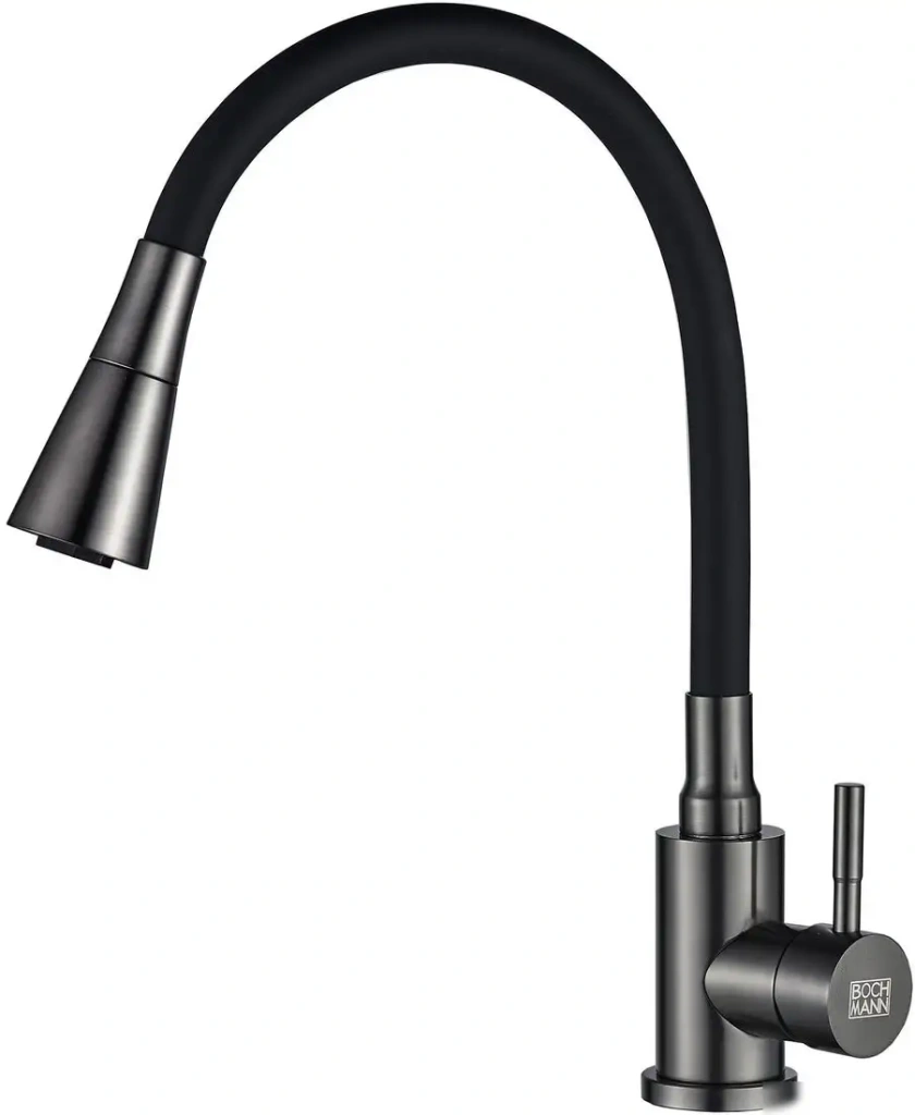 Смеситель Boch Mann MIA GR BM10422 предназначен для кухни и устанавливается на раковину или столешницу с одним монтажным отверстием. Он выполнен из прочной нержавеющей стали и имеет современный серый или черный цвет. Благодаря однорычажной конструкции управления, вы легко регулируете температуру и поток воды одним движением. Встроенный керамический картридж обеспечивает долговечность и плавное движение смесителя. Поворотный излив на 180° позволяет удобно мыть посуду со всех сторон. Выдвижной и гибкий излив облегчает наполнение больших кастрюль и تنظيف труднодоступных мест. Высота смесителя составляет 480 мм, а длина излива — 197 мм, что дает простор для работы. Он не оснащен каскадным изливом или функцией возвратной пружины, но отлично подойдет для ежедневных нужд на кухне.