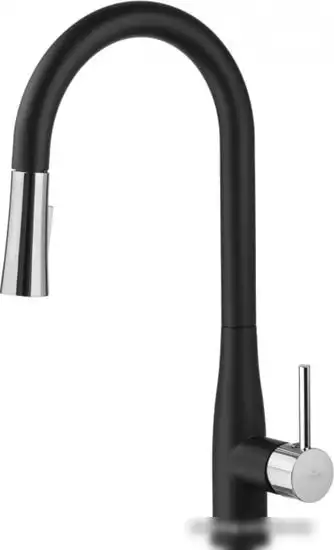 - Выдвижной и гибкий излив — помогает легко достигать любые участки раковины