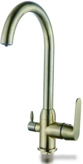 Смеситель Diadonna D82-446118Q предназначен для установки на кухне и подходит для раковины или столешницы благодаря одному монтажному отверстию. Он выполнен из прочной латуни в красивом бронзовом цвете. Оснащен удобным однорычажным механизмом, что облегчает регулировку температуры и потока воды. В конструкции есть встроенный кран для питьевой воды и керамический картридж диаметром 35 мм, который обеспечивает долгую работу без протечек. Поворотный излив на 360 градусов дает свободу в использовании.