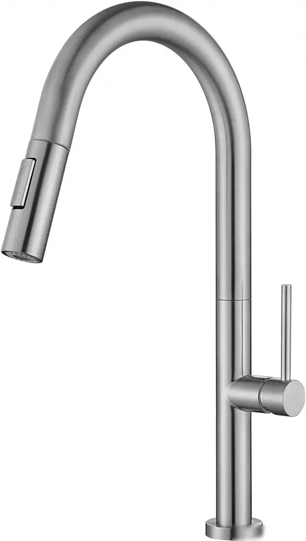 Смеситель Ekko E4712 предназначен для использования на кухне и легко устанавливается на раковину или столешницу с одним монтажным отверстием. Он оснащён одним рычагом для комфортного регулировки воды и выполнен из прочной стали в красивом сатиновом цвете. Благодаря поворотному изливу, вы сможете удобно направлять поток воды в любую часть раковины. В выдвижном или гибком изливе есть возможность легко менять направление воды, что облегчает мытьё посуды и продуктов. Размеры устройства позволяют удобно размещать его на вашей кухне, не занимая лишнего места. Это надёжный и практичный смеситель, который прослужит вам долго благодаря качественной конструкции. Черты конструкции и функционал делают работу на кухне более комфортной и приятной.