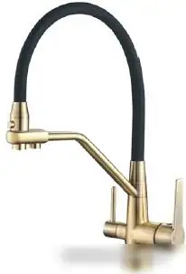 Смеситель Ekko EM4460-27 предназначен для использования на кухне и выполнен в стильных черных и золотых цветах. Он оснащен одним рычагом для легкого регулирования воды и изготовлен из прочной латуни. В смесителе есть керамический картридж диаметром 35 мм, который обеспечивает плавное и точное управление потоком воды. Это помогает избежать протечек и упрощает использование. Благодаря современному дизайну он отлично впишется в любой интерьер кухни. Смеситель легко устанавливается и служит долго благодаря качественным материалам. Он сочетает в себе практичность и эстетичность для комфортной работы на кухне.