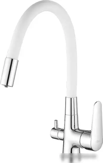 Смеситель Esko Coral CL 03 W предназначен для использования на кухне. Он устанавливается на раковину или столешницу и имеет один монтажный отверстие. Смеситель оснащен однорычажным механизмом, который позволяет легко регулировать воду и температуру. Его расход воды составляет 12 литров в минуту, что обеспечивает эффективную работу. Корпус изготовлен из прочной латуни и покрыт белым или хромированным покрытием. Встроенный кран для питьевой воды и выдвижной гибкий излив делают его удобным в использовании. Благодаря керамическому картриджу диаметром 35 мм, смеситель работает плавно и долго без утечек.