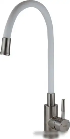 Смеситель Esko K 44 G предназначен для мойки и легко устанавливается на раковину или столешницу. Он имеет одинечный механизм с одноручной регулировкой температуры и потока воды. Этот смеситель выполнен из прочной латуни и покрыт белой краской, что делает его стильным и долговечным. Встроенный керамический картридж обеспечивает плавное и точное управление. Излив поворотный и выдвижной, что удобно для различных задач и мытья больших предметов. Аэротор смесителя позволяет уменьшить разбрызгивание воды. Его простая конструкция позволяет быстро и легко ухаживать. Смеситель подходит для установки на стандартные отверстия раковины, обеспечивая надежность и комфорт в использовании.