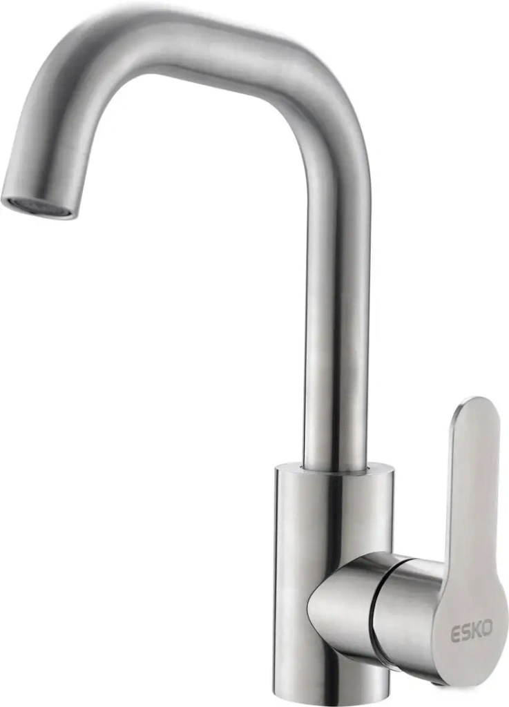 Смеситель Esko Orlando OL26M предназначен для кухни и устанавливается на раковину или столешницу с одним монтажным отверстием. Он выполнен из нержавеющей стали, что обеспечивает долговечность и современный внешний вид. Одноручный механизм управления позволяет легко регулировать температуру и поток воды одной рукой. Встроенный керамический картридж длиной 35 мм обеспечивает плавное и надёжное переключение. Поворотный излив с длиной 145 мм и высотой 188 мм облегчает мытьё посуды и использование раковины. Высота изделия — 258 мм, что обеспечивает комфортный доступ. Благодаря качественной конструкции и материалам, этот смеситель прослужит долго и не потеряет внешний вид. Он не имеет выдвижного излива и дополнительных функций, но полностью выполняет основные задачи. Смеситель легко подключается и обеспечивает стабильную подачу воды. Такой прибор — хороший выбор для современного кухонного интерьера.