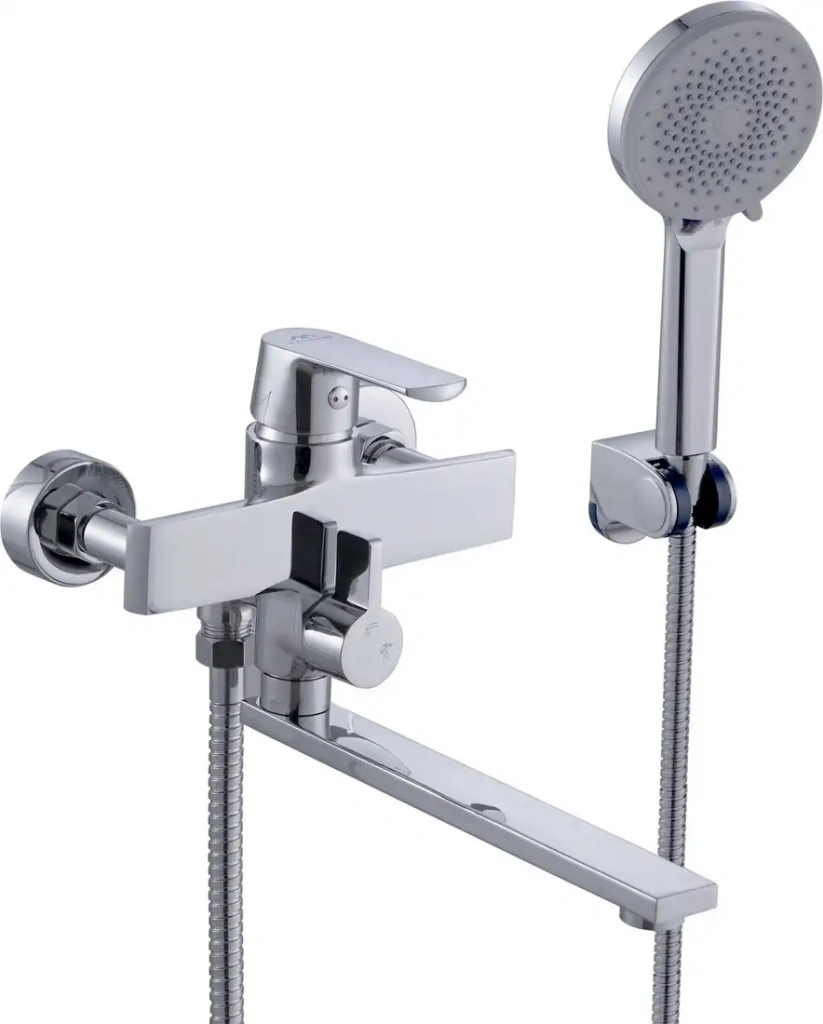 Смеситель Fashun A2289 предназначен для ванн и устанавливается на стену. Он оснащён однорычажным механизмом, который легко регулирует температуру и поток воды. Смеситель выполнен из латуньи с глянцевым хромовым покрытием, что делает его устойчивым к коррозии и эстетичным. Он имеет керамический картридж диаметром 35 мм для долговечной работы. Поворотный излив на 215 мм позволяет удобно наполнять ванну или мыть раковину. Комплектация включает душевой гарнитур с тремя режимами, который удобно переключается. Смеситель имеет две монтажных отверстия, что обеспечивает стабильную установку. Его высота составляет 166 мм, а вылет излива — 215 мм. Этот смеситель сочетает практичность и современный дизайн для комфортного использования.