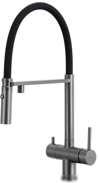 Смеситель Gappo G4397-89 предназначен для кухни и устанавливается на раковину или столешницу. Он имеет один монтажный отверстие и удобный однорычажный механизм управления. Изделие выполнено в сером и черном цветах из прочной оружейной стали, что делает его долговечным и современным. Встроенный кран для питьевой воды обеспечивает безопасное использование, а керамический картридж обеспечивает длительный срок службы. Поворотный и выдвижной излив позволяют удобно регулировать поток воды и мыть посуду. Габариты смесителя — высота 485 мм, длина излива 230 мм, высота излива 175 мм.