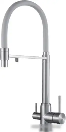 Смеситель Gappo G4399-5 предназначен для установки на раковину или столешницу. Он выполнен из прочной стали и окрашен в приятный сатиновый цвет. Смеситель оснащён одним рычагом для удобного регулировки температуры и течения воды. В конструкции есть встроенный кран для подачи питьевой воды, а керамический картридж обеспечит долгий срок службы и плавное управление. Излив поворачивается, что удобно при использовании. Кроме того, есть выдвижной гибкий излив для комфортного мытья посуды или овощей. Высота изделия 538 мм, а длина излива — 230 мм, что подходит для большинства раковин.