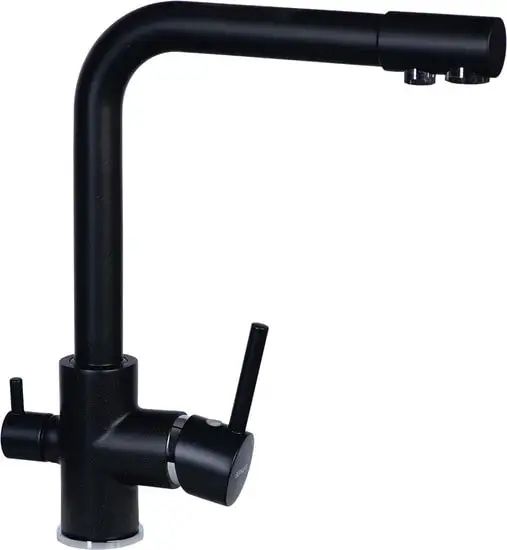 Смеситель Gerhans HU01K4055-3-25 (оникс) предназначен для использования на раковинах или столешницах, его монтаж осуществляется через одно отверстие. Он выполнен из прочной латуни и имеет современный черный цвет, который хорошо сочетается с каменной мойкой. Механизм однорычажный облегчает управление температурой и напором воды. В конструкции предусмотрен встроенный кран для подачи питьевой воды, а керамический 35-миллиметровый картридж обеспечивает долгий срок службы и устойчивость к износу. Излив поворачивается, что удобно для разнообразных задач. Габариты позволяют легко установить и использовать этот смеситель, а его дизайн делает вашу кухню более стильной и удобной.