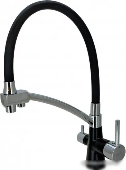 Смеситель Gerhans KK4855B-2 специально создан для кухни и устанавливается на раковину или столешницу. Он имеет однорычажный механизм, который позволяет легко регулировать температуру и поток воды одним движением. Благодаря поворотному и выдвижному изливу с аэратором, вы удобно наполняете большие кастрюли и моете посуду. Встроенный кран для питьевой воды обеспечивает безопасное и комфортное использование. Смеситель выполнен из прочной латунь и покрыт стильным черным цветом с хромированным акцентом. Высота устройства — 416 мм, длина излива — 224 мм, а высота излива — 195 мм, что дает хорошую свободу движений. Керамический картридж гарантирует долгий срок службы и надежное регулирование. Его простая конструкция и качественные материалы обеспечивают долговечность и легкое обслуживание.