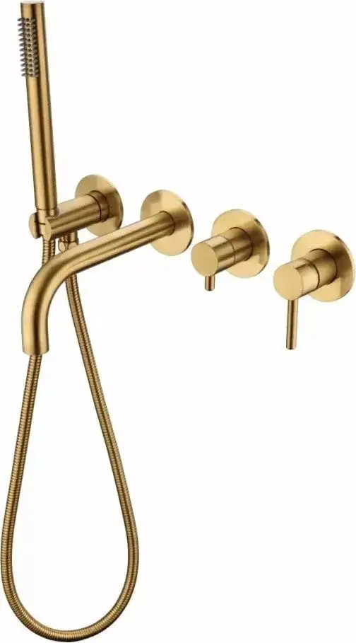 Смеситель Grocenberg GB5070 в золотом брашированном цвете отлично подойдет для вашей ванны. Он предназначен для монтажа на стену и имеет четыре монтажных отверстия, что обеспечивает надежное крепление. В конструкции используется прочная латунь и керамический картридж диаметром 40 мм, что делает работу устройства долговечной и плавной. Смеситель оснащен поворотным изливом длиной 200 мм, который позволяет удобно регулировать поток воды. В комплект входит душевой гарнитур с одним режимом, что удобно для ежедневного использования. Такой смеситель легко устанавливается и помогает регулировать температуру и напор воды. Его стильный дизайн подчеркнет современный интерьер вашей ванной комнаты. Простое управление и надежные компоненты обеспечивают комфорт и долговечность работы.