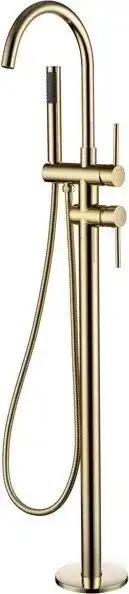 Смеситель Grocenberg GB900 в матовом золоте отлично подходит для ванны. Он выполнен из прочной латуни, что обеспечивает долговечность и надежность. Смеситель оснащен керамическим картриджем диаметром 40 мм, который помогает легко регулировать температуру и поток воды. Его поворотный излив с вылетом 200 мм позволяет удобно пользоваться умывальником или ванной. Монтаж осуществляется через одно отверстие, что упрощает установку. В комплект входит душевой гарнитур с одним режимом для комфортной гигиены. Высота устройства составляет 1100 мм, что подходит для большинства ванных комнат. Смеситель легко управляется и прослужит долго без протечек и поломок. Его стильный дизайн и надежность делают его хорошим выбором для любой ванной комнаты.
