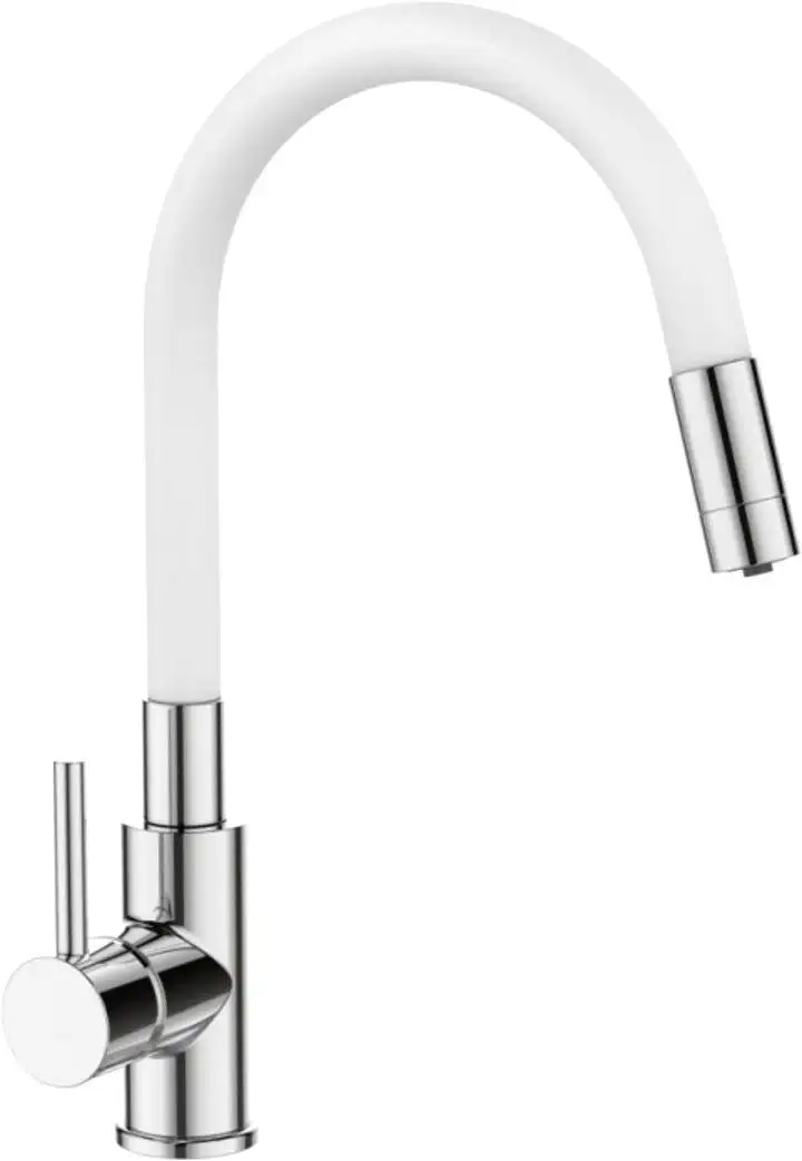 Смеситель Gross Aqua ColorflexPlus 3245609W идеально подходит для кухни. Он выполнен из прочной стали и имеет белый или хромированный цвет, что легко сочетается с любой техникой и интерьером. Смеситель оснащён одним рычагом для удобного регулировки воды и керамическим картриджом диаметром 35 мм, что обеспечивает долгий срок службы и простоту использования. Благодаря поворотному и выдвижному изливу длиной 215 мм, вы легко сможете наполнить большие кастрюли и помыть раковину. Установка производится через одно отверстие, что делает монтаж быстрым и удобным. Этот смеситель надежен и практичен для ежедневного использования в вашей кухне.