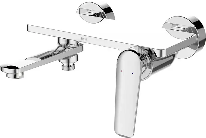 Смеситель IDDIS Dash DASSB00i02WA предназначен для установки на стену и объединяет функции ванны и душа. Он оснащен однорычажным механизмом, который легко регулирует температуру и напор воды одним движением. Смеситель выполнен из прочной латуни и покрыт хромовой пленкой, что обеспечивает долговечность и привлекательный внешний вид. Поворотный излив с вылетом до 190 мм позволяет удобно направлять воду в нужную зону. Его ширина составляет 224 мм, что делает его компактным и удобным в использовании. Устройство имеет два монтажных отверстия, что облегчает установку. Керамический картридж гарантирует долгий срок службы и стабильную работу. Такой смеситель легко сочетается с разной сантехникой и украсит любую ванную комнату.