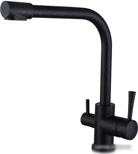 Смеситель Kaiser Merkur в элегантном черном цвете выполнен из прочной латуни и украшен имитацией мрамора. Он обладает однорычажным механизмом, что делает его использование простым и удобным. Излив можно повернуть на 360°, что позволяет легко регулировать поток воды и удобно мыть посуду или раковину. В смесителе есть керамический картридж диаметром 35 мм, он обеспечивает долговечность и плавное управление. Подключение фильтра воды помогает снизить уровень загрязнений в водопроводе. Высота изделия составляет 322 мм, а длина излива — 246 мм, что подходит для большинства раковин и столешниц. Благодаря качественным материалам и современному дизайну, этот смеситель прослужит долго и украсит вашу кухню.