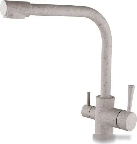 Смеситель Kaiser Merkur с песчаным мрамором — это надежный и простой в использовании прибор для вашей мойки. Он выполнен из прочной латуни и имеет однорычажный механизм, который удобно управляется одним движением. Поворотный излив на 360° позволяет легко направлять воду туда, где она необходима, что удобно при мытье посуды или рук. Смеситель подключается к фильтру воды и подходит для установки на раковину или столешницу. Он не имеет дополнительных функций, таких как выдвижной излив или кнопка экономии воды, что делает его простым и надежным. Его высота составляет 322 мм, а длина излива — 246 мм, что позволяет удобно пользоваться сразу из нескольких сторон. Этот смеситель идеально подойдет для тех, кто ищет простой и долговечный вариант для кухни.