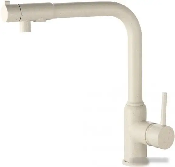 Смеситель Kaiser Teka 13044-11 выполнен в бежевом цвете и подходит для монтажа на раковину или столешницу с одним отверстием. Он изготовлен из прочной латуни и имеет однорычажный механизм управления, что делает его использование простым и удобным. Встроенный кран для питьевой воды позволяет легко получить свежую воду прямо в кухне. Керамический картридж размером 35 мм обеспечивает долгий срок службы и плавное управление потоком воды. Поворотный излив с длиной 195 мм помогает удобно направлять воду в любой части раковины и облегчает мытьё посуды и продуктов. Этот смеситель хорошо сочетается с моющими раковинами из камня и отлично подходит для домашней кухни.