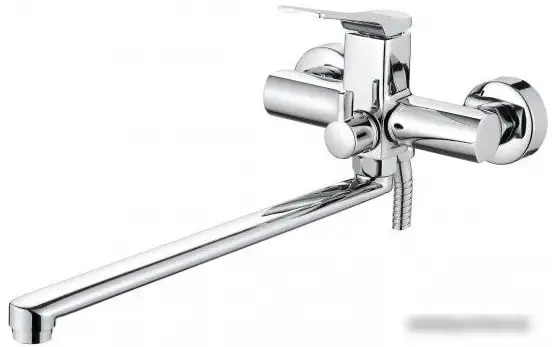 Смеситель Ledeme L2275 предназначен для установки в ванной комнате, объединяя функции для ванны и душа. Он монтируется на стену и имеет два монтажных отверстия для удобства установки. Чтобы управлять водой легко и точно, в нем есть один рычаг, а внутри установлен керамический картридж. Смеситель выполнен из прочной латуни и покрашен в хром, что придает ему современный и устойчивый к коррозии внешний вид. Благодаря поворотному изливу длиной 350 мм, его легче направлять в нужное место.
