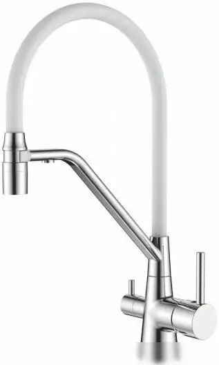Смеситель Ledeme L4897-3 предназначен для установки на кухне, его легко монтировать на раковину или столешницу. Он выполнен из надежной латуни и доступен в белом и хромированном цвете, что гармонично впишется в любой интерьер. Механизм однорычажный позволяет быстро и точно регулировать температуру и поток воды. Встроенный кран для питьевой воды обеспечивает безопасное и удобное использование. Керамический картридж гарантирует долгий срок службы и стабильную работу. Поворотный и выдвижной излив делают использование еще проще и удобнее, позволяя легко направлять поток. Аэротор улучшает качество воды, сокращая разбрызгивание. Высота смесителя — 443 мм, длина излива — 220 мм, что удобно для мойки больших посуд. Этот смеситель не имеет ограничителя расхода воды и не подключается к стиральной или посудомоечной машине, что подходит для домашнего использования.