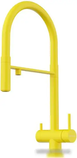 Смеситель Omoikiri Kanto-SL в ярком желтом цвете идеально подойдет для кухни. Он выполнен из прочной латуни и имеет однорычажный механизм, что облегчает управление и обеспечивает точное регулирование воды. Высокий поворотный излив длиной 220 мм позволяет удобно мыть посуду и продукты. Встроенный кран для питьевой воды обеспечивает безопасное и комфортное использование. Керамический картридж диаметром 35 мм гарантирует долговечность и отсутствие капаний. Модель легко устанавливается на раковину или столешницу с одним монтажным отверстием. Благодаря компактным размерам шириной 155 мм и высотой 495 мм, он занимает мало места. Смеситель обладает надежной конструкцией и современным стилем, что дополнит интерьер вашей кухни.