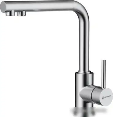 Смеситель Omoikiri Nakagawa 2 Plus-BN выполнен из нержавеющей стали, что делает его прочным и долговечным. Он предназначен для установки на раковину или столешницу и оснащён одним рычагом для лёгкого регулирования температуры и воды. В этом смесителе есть встроенный кран для питьевой воды и керамический картридж, который обеспечивает плавное управление и долговечность. Благодаря поворотному изливу длиной 210 мм, вы можете удобно направлять воду в любую часть раковины. Такой дизайн подходит для кухни, а металлический цвет отлично сочетается с современными интерьерами. Он не имеет функции выдвижного или гибкого излива, что упрощает его использование. Отличительной чертой является встроенный кран для питьевой воды, что удобно для получения чистой воды без дополнительного оборудования.