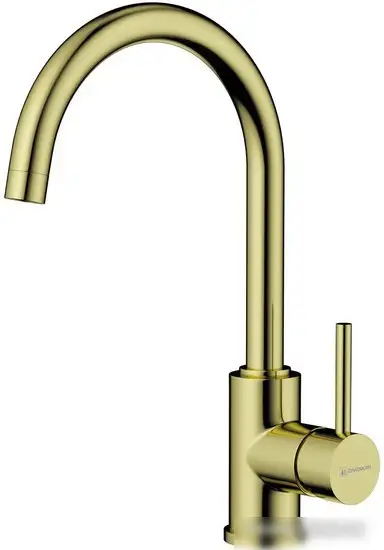Смеситель Omoikiri Shinagawa-LG в светлом золотом цвете отлично подойдет для кухни. Он имеет один монтажный отверстие и легкий однорычажный механизм, который упрощает регулирование температуры и расхода воды. Встроенный керамический картридж 35 мм обеспечивает долгий срок службы и плавное движение рычага. Излив поворотный с длиной 182 мм позволяет удобно направлять воду. Такой смеситель выполнен из прочной латунной конструкции, что гарантирует надежность. Он подходит для установки на раковину или столешницу, не требует ограничителя расхода воды и не имеет дополнительных функций, таких как выдвижной излив. Он сочетает стильный дизайн и простоту использования.