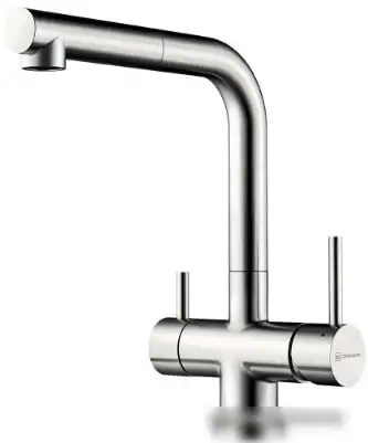 Смеситель Omoikiri Takamatsu-S BN выполнен из нержавеющей стали и предназначен для установки на раковину или столешницу с одним отверстием. Он имеет однорычажный механизм, который облегчает управление температурой и потокам воды. Встроенный кран для питьевой воды позволяет удобно пользоваться чистой водой без дополнительных приборов. Смеситель оснащён керамическим картриджем диаметром 35 мм, что обеспечивает долговечность и плавное движение ручки. Поворотный излив на 360° делает мытьё удобным, особенно в больших раковинах. Габариты: ширина — 152 мм, высота — 295 мм, длина излива — 187 мм, высота излива — 253 мм. Этот смеситель отличается эстетичным стальным цветом и прочной конструкцией из латуни.