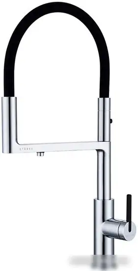 Смеситель Paulmark Tornado TO213402-CR выполнен в стильном хромированном цвете и предназначен для кухонь. Он устанавливается на раковину или столешницу и имеет один монтажный отверстие. В конструкции используется удобный однорычажный механизм и керамический картридж, что обеспечивает плавное управление водой и долговечность. Излив поворотный на 360° позволяет легко мыть посуду и продукты во время готовки. Выдвижной и гибкий излив повышает комфорт при использовании, а встроенный кран для питьевой воды делает его универсальным. Высота изделия составляет 565 мм, длина излива – 160 мм, что удобно для различных кухонных пространств.
