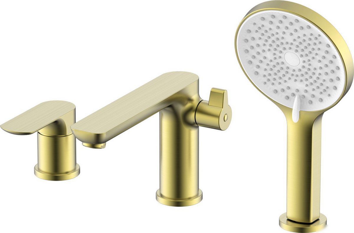 Смеситель Raglo R03.31.03 предназначен для установки на ванну или полку, имеет три монтажных отверстия. Он выполнен из латуни с золотым покрытием, что делает его прочным и стильным. Механизм однорычажного типа легко регулирует температуру и поток воды. Благодаря керамическому картриджу смеситель долговечен и не протекает. В комплект входит душевой гарнитур для большего комфорта во время использования. Излив длиной 173 мм обеспечивает удобный поток воды. Смеситель не ограничивает расход воды и не ограничивает по температуре. Он не поворачивается и не имеет каскадного или поворотного излива. Устройство легко монтируется на стандартное отверстие, что упрощает установку.