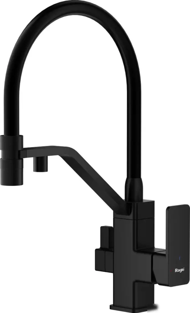 Смеситель Raglo R85.62.06 предназначен для кухни и легко устанавливается на раковину или столешницу через одно отверстие. Он выполнен из прочной латуни и имеет современный черный цвет. Механизм с однорычагом позволяет быстро регулировать температуру и поток воды. Встроенный кран для питьевой воды обеспечивает безопасное употребление жидкости. Керамический картридж диаметром 35 мм гарантирует долговечность и гладкое управление. Поворотный излив на 360° облегчает использование в любой части раковины, а выдвижной гибкий излив помогает при мытье. Высота устройства составляет 418 мм, длина излива — 230 мм, а высота излива — 203 мм, что обеспечивает хорошую зону работы. Смеситель не имеет каскадного излива, ограничителей расхода воды или температуры.