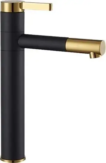 Смеситель Rea Smart REA-B7402 подойдет для установки на отдельностоящий умывальник или раковину. Он выполнен из прочной латуни и имеет стильный черный и золотой цвет. Смеситель оснащен однорычажным механизмом, что позволяет удобно регулировать воду. У него есть поворотный излив длиной 180 мм и высотой 215 мм, что обеспечивает комфорт при использовании. В комплект входит донный клапан для слива воды. Этот смеситель прост в установке и использовании, он отлично впишется в современный интерьер ванной комнаты. Обратите внимание, что он не имеет каскадного излива, ограничения расхода воды и тепловых механик.