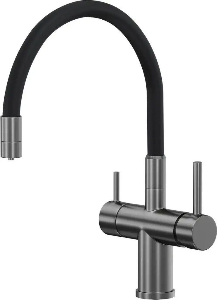 Смеситель Reflexion Lago RX9902BL предназначен для кухни и устанавливается на раковину или столешницу. Он оснащен одним монтажным отверстием и механическим однорычажным управлением, что облегчает регулировку температуры и расхода воды. Излив поворотный, длиной 230 мм, с высотой 189.8 мм, что обеспечивает удобство при мытье посуды и продуктов. Корпус сделан из высококачественной металловой стали серого цвета, что придает эстетичный и современный вид. Встроенный кран для питьевой воды позволяет сразу получать чистую питьевую воду без дополнительных устройств. Керамический картридж обеспечивает долговечность и стабильную работу устройства. Этот смеситель легко монтируется и подходит для стандартных водопроводных соединений.