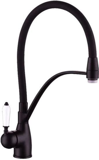 Смеситель Rose R153H предназначен для кухни и легко устанавливается на раковину или столешницу с одним монтажным отверстием. Он выполнен из прочной латуни и имеет современный черный цвет, который отлично подчеркнет дизайн вашей кухни. Однорычажный механизм обеспечивает удобное управление температурой и напором воды. Благодаря поворотному и выдвижному изливу с аэратором, мытье посуды и ополаскивание станут проще и комфортнее. Такой смеситель не только практичен, но и выглядит современно. Пользователи оценят его надежность и удобство в использовании.