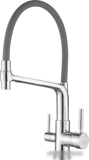 Этот смеситель Rose R658 подходит для кухни и устанавливается на раковину или столешницу с одним отверстием. Он выполнен из прочной латуни и представлен в сером или хромированном цвете, что хорошо сочетается с любой кухней. Механизм однорычажный позволяет легко управлять подачей воды, а керамический картридж обеспечивает долговечность и плавное движение. Кроме того, у смесителя есть встроенный кран для питьевой воды и поворотный, выдвижной излив с аэратором — это удобно и экономит воду. Габариты позволяют легко разместить его на стандартных раковинах. Это практичный и удобный выбор для кухни, сочетающий в себе стиль и функциональность.