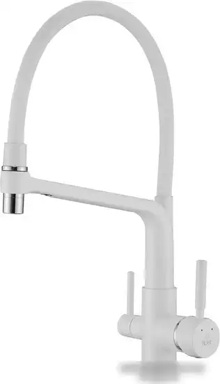 Смеситель Rose R658C предназначен для кухни и легко устанавливается на раковину или столешницу. Он выполнен из прочной латуни и имеет белый цвет, что хорошо сочетается с современным интерьером. Одноручный механизм позволяет удобно регулировать температуру и поток воды. В смесителе есть встроенный кран для питьевой воды и керамический картридж для долговечности. Выдвижной и поворотный излив с аэратором обеспечивает удобство при мытье посуды и габариты: длина 228 мм и высота 445 мм.